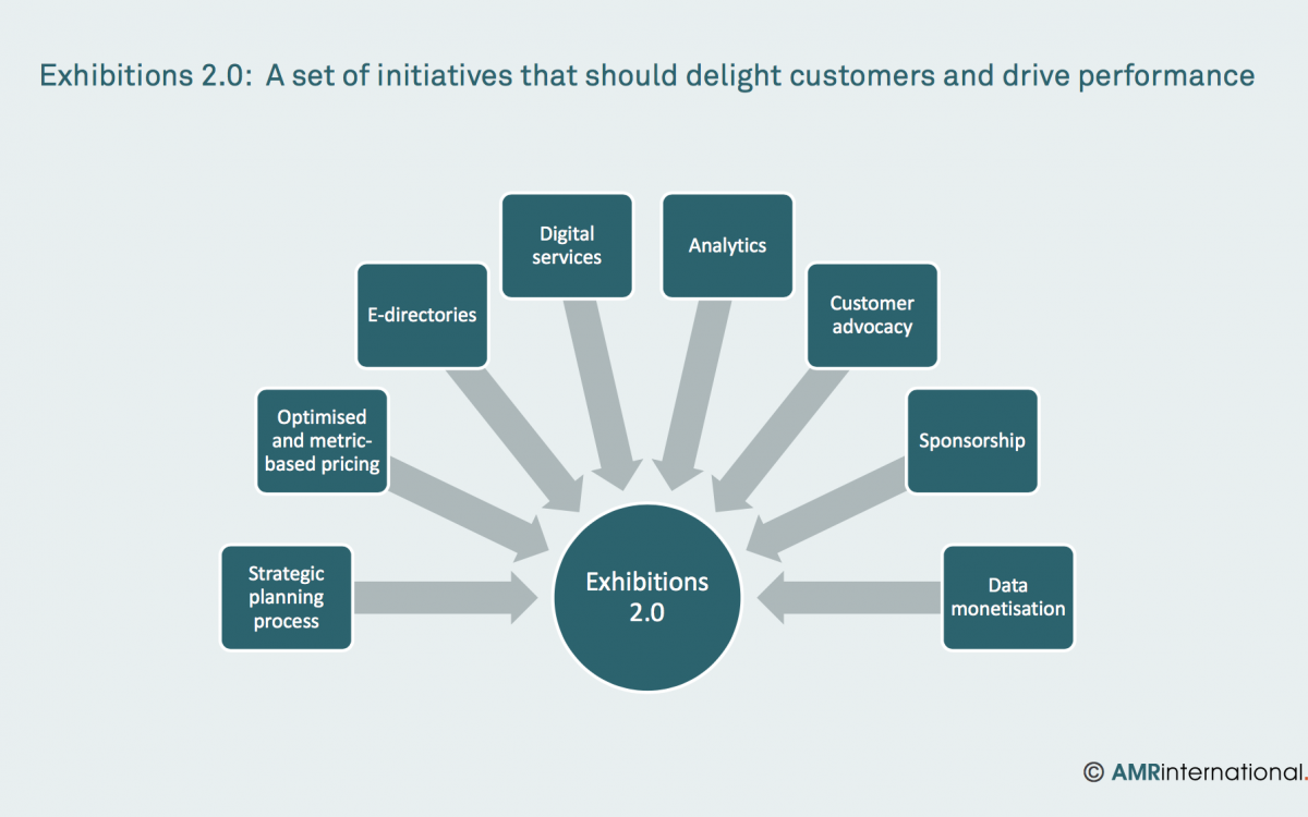 To help organizers evolve and thrive with the change, AMR introduced Exhibitions 2.0, a framework that consists of a set of initiatives to drive customer satisfaction and performance. The initiatives include event-level strategy, price optimization, digital packages, e-directories, advanced analytics, sponsorship and driving customer advocacy. These can be tackled individually or in packages.
